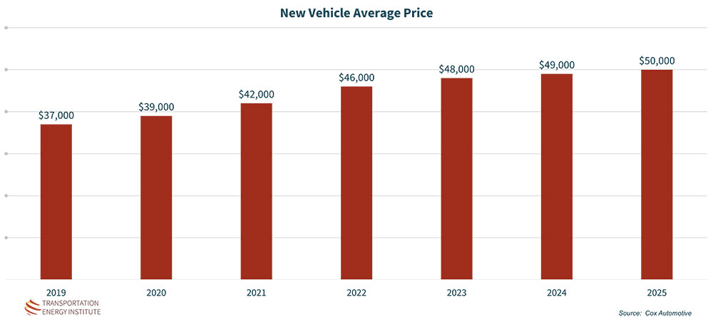 Towards the end of 2025, news coverage began to focus on affordability, and the price of new vehicles became a central proof point in articles of concern. The Transportation Energy Institute recognizes that affordability is a primary factor that should drive strategic development for the transportation sector, because if the consumer cannot afford or refuses to pay for a new market option, that option will fail. The news coverage was not wrong – and when we look at the data, there appears to be significant cause for concern.